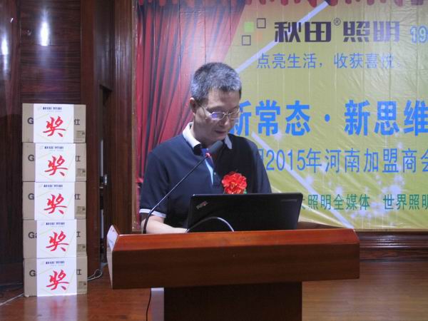 秋田照明河南運營中心總經(jīng)理魏傳寶對上一年度及2015 上半年年度的工作進行了總結(jié)和回顧。魏傳寶表示,上一年度通過節(jié)日促銷,團購會、電工會議、廣告宣傳投放等活動推動了加盟店積極參與市場競爭。其中,升級旗艦店3家,舉辦各類活動60場次。進入今年以來,對團隊工作進行了強化,截止目前共舉辦各類活動35場,對市場進行了 持續(xù)的強化。下一步,秋田照明河南運營中心將依托“三個整理,一個樹立”全面推動加盟商整體運作能力。即形象整理,配合公司〇丅〇平臺建設(shè);素質(zhì)整理,加強秋田軟件建設(shè)和開發(fā);思維整理,創(chuàng)新思路,共贏市場。未來,秋田照明河南運營中心將進一步幫助經(jīng)銷商提升運營能力,統(tǒng)籌整體資源強化運營體制的完善和管理,進一步打造“家”主題的企業(yè)文化氛圍,助推經(jīng)銷商整體實力的提升。來自鞏義和夏邑的王維新,楊千里作為經(jīng)銷商代表分別做了精彩的心得分享。