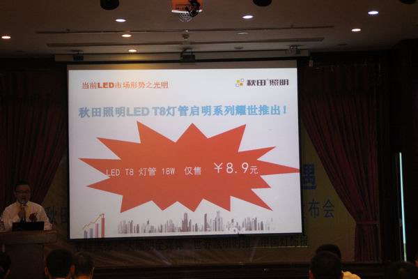 為了提振廣大經(jīng)銷商的信心。進一步提高秋田系列產(chǎn)品在市場上的競爭力。秋田照明銷售部經(jīng)理鮑鑫在對當前的宏觀經(jīng)濟形勢下的照明行業(yè)現(xiàn)狀進行了分析和解讀后宣布,秋田照明將正式下調(diào)多款一線產(chǎn)品價格。其中,備受業(yè)內(nèi)關(guān)注的T8燈管將下調(diào)為8.9元,也標志著秋田照明正式加入“破十”價格戰(zhàn)團。
