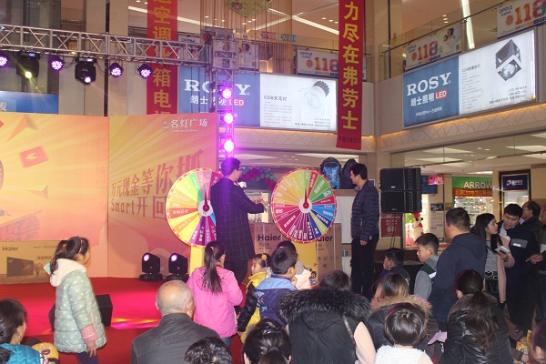 據(jù)升龍金泰成燈飾廣場負責(zé)人透露,本次金泰成跨年名燈品鑒會聯(lián)合各大燈具品牌,優(yōu)惠空前,買燈就送家電,還可參與每日抽獎、大轉(zhuǎn)盤抽獎以及現(xiàn)場抓錢游戲;顒悠陂g,全場消費滿100元,即可參與每日抽獎,獎品有空氣凈化器、42寸平板電視等。消費滿500元即可參與大轉(zhuǎn)盤游戲,100%中獎機會,獎品包括海爾洗衣機、松下電吹風(fēng)、移動電源等。消費滿3000元即可進抓錢機抓錢15秒,每多消費1000元,即可多參與1秒抓錢游戲,抓到的現(xiàn)金券可等額兌換現(xiàn)金.活動最后一天還有機會贏得smart汽車一年使用權(quán).