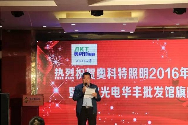 接著,河南雙歐光電總經(jīng)理劉建軍針對(duì)公司的發(fā)展方向和規(guī)劃進(jìn)行了講解。他表示,河南雙歐光電專(zhuān)注照明行業(yè)近20年,有著豐富行業(yè)積累和成熟的品牌運(yùn)作經(jīng)驗(yàn)。在2016年,雙歐光電逆流而上,不僅與奧科特等實(shí)力品牌達(dá)成戰(zhàn)略合作,而且新建了300余平方米的雙歐光電旗艦店和3000余平方米的倉(cāng)庫(kù)。同時(shí),雙歐光電還加大了人員投入,全力打造雙歐光電的經(jīng)銷(xiāo)商服務(wù)平臺(tái)。