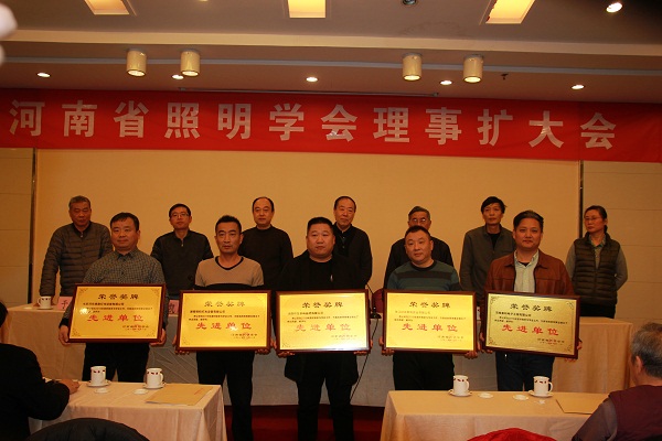本次會(huì)議還對2016年度的先進(jìn)單位進(jìn)行了頒獎(jiǎng),鄭州森源新能源科技有限公司、生茂光電、河南省泛光照明、河南新中飛、河南城之光、鄭州中部LED交易中心、河南新飛利照明等17家單位得到表彰。