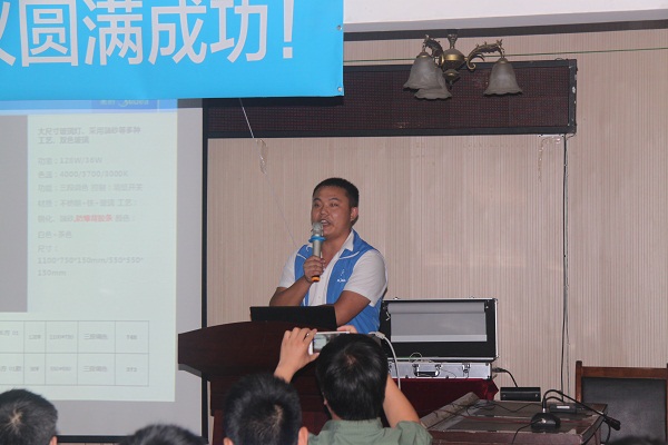 接著,美的照明產(chǎn)品經(jīng)理陳德健和河南美的暖通設(shè)備銷售有限公司照明產(chǎn)品經(jīng)理王蒙分別針對照明專業(yè)知識和美的照明即將推出的產(chǎn)品系列進(jìn)行了講解。與會經(jīng)銷商積極參與現(xiàn)場互動,起到了良好的溝通和交流效果。