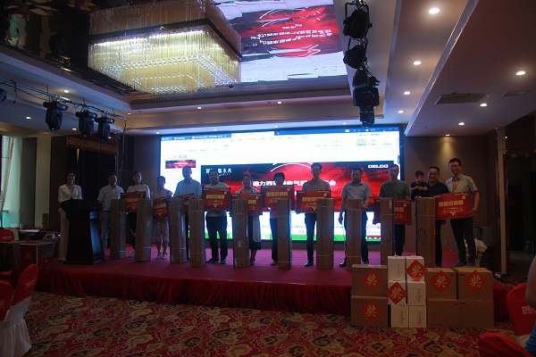 在本次會議上,德力西家居電氣還對10個明星經(jīng)銷商和3個銷售之星進行了表彰,分別獎勵小米料理機和格力冷風(fēng)扇各一臺。鄭州、駐馬店、夏邑等地的經(jīng)銷商代表發(fā)表獲獎感言,他們結(jié)合自身的經(jīng)營狀況,紛紛表達對德力西感謝,感謝德力西助力他們成長壯大,并對未來的發(fā)展充滿的信心。