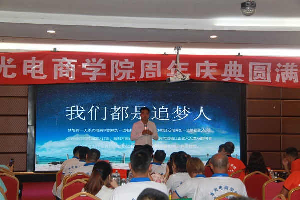 活動(dòng)伊始,河南水光電商學(xué)院榮譽(yù)院長(zhǎng)、河南水光電企業(yè)管理咨詢有限公司董事長(zhǎng)姜業(yè)首先致辭,他對(duì)在百忙之中參加水光電商學(xué)院的1周年慶典的各位領(lǐng)導(dǎo)和嘉賓表示衷心的感謝!