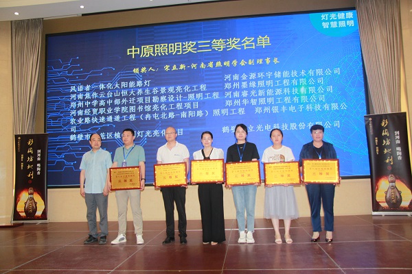 論壇結(jié)束之后,還進(jìn)行了主題為新中飛之夜的頒獎(jiǎng)晚會(huì),一方面對(duì)2020年度表現(xiàn)突出,積極參與學(xué)會(huì)活動(dòng)的先進(jìn)個(gè)人和企業(yè)進(jìn)行了表彰;另一方面對(duì)本次論壇優(yōu)秀學(xué)術(shù)論文,以及第八屆中原照明獎(jiǎng)的獲獎(jiǎng)企業(yè)進(jìn)行了頒獎(jiǎng)。河南照明行業(yè)一大批優(yōu)秀的企業(yè)和個(gè)人得到肯定和鼓勵(lì),同時(shí)還對(duì)新加入學(xué)會(huì)的團(tuán)體會(huì)員、理事和副理事長(zhǎng)單位進(jìn)行了授牌。